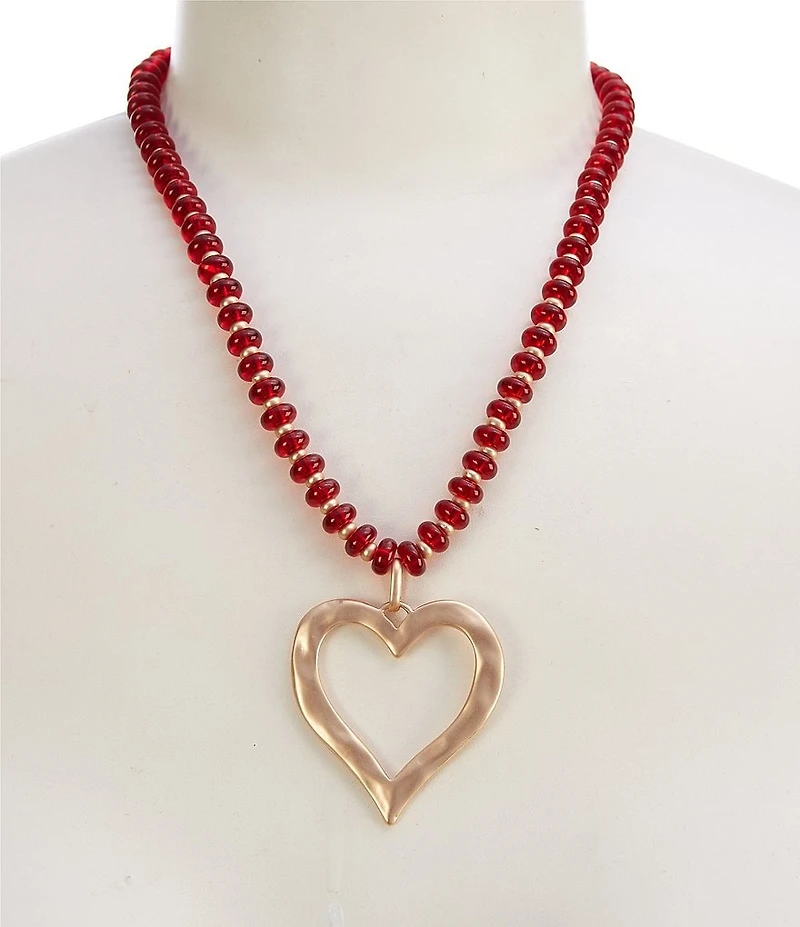 Southern Living Red Beaded Open Wobbly Heart Short Statement Pendant Necklace in Chattanooga, TN