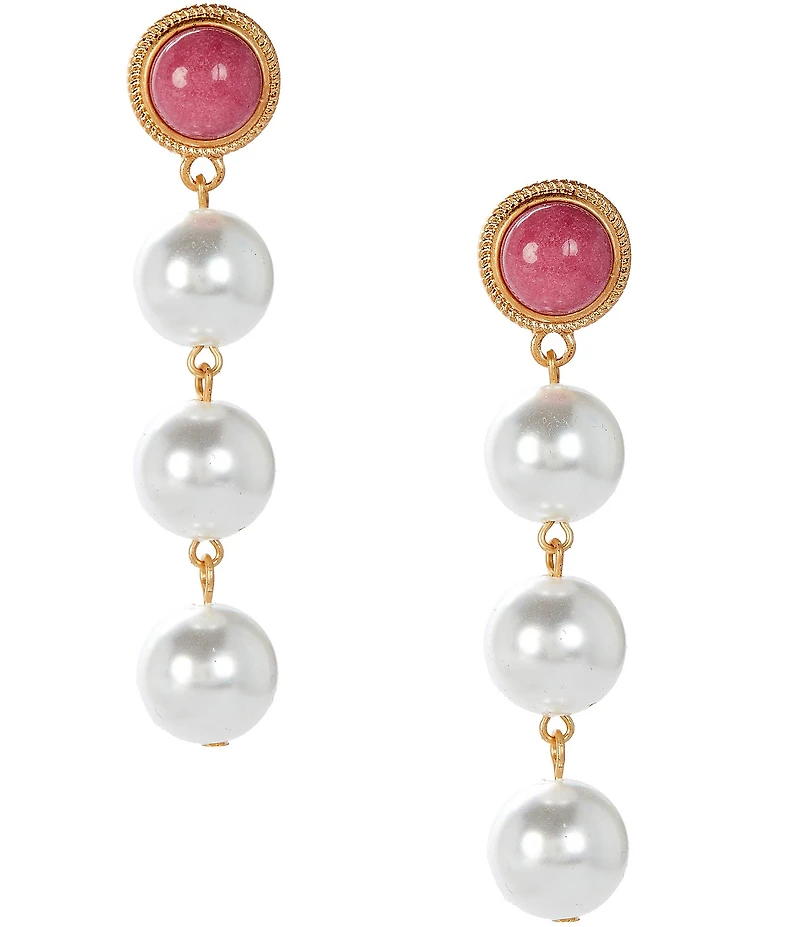 From Southern Living, these earrings feature: Drop earrings Gold plated iron and zinc with semi-precious stones and acrylic pearls Post closure Measures approx. 3" L x 0.5" W Imported.