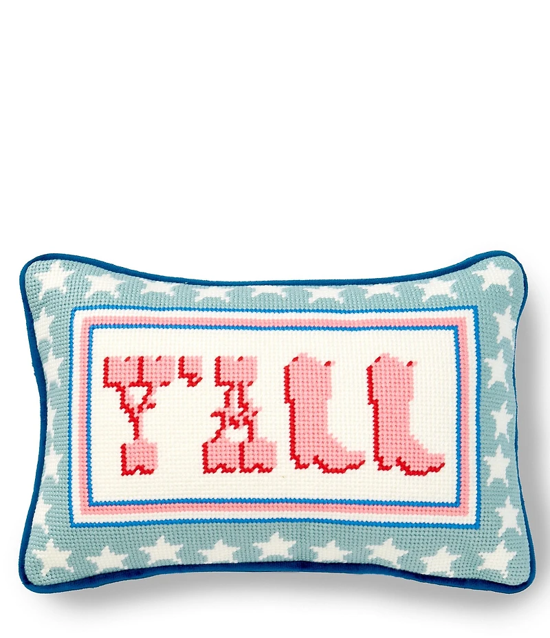 From Southern Living, this pillow features: Needlepoint face 100% Polyester; polyester fill Solid knit back "Y'ALL" verbiage Approx. 8" x 12" Spot clean Imported. Southern Living is a trademark of TI Lifestyle Group, LLC, a subsidiary of Meredith Operations Corporation, and is used under license.