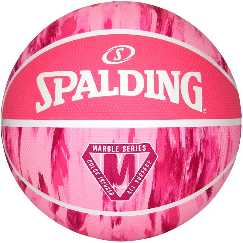 Practice and play in style with the Spalding Marble Series Outdoor Basketball. The performance rubber cover feels soft and is durable on all court surfaces, and the raised stitching allows maximum control. Responsive core delivers reliable bounce. The infused color mix creates a marbled look for extra style.