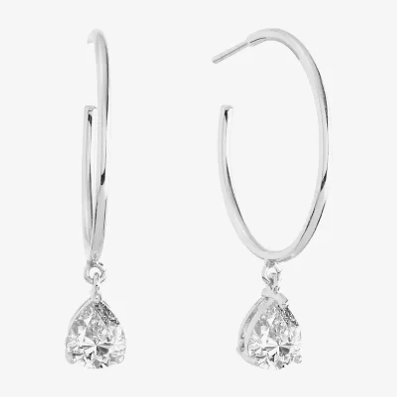 Sparkle Allure Charm Drop Womens Crystal 41.9mm Hoop Earrings