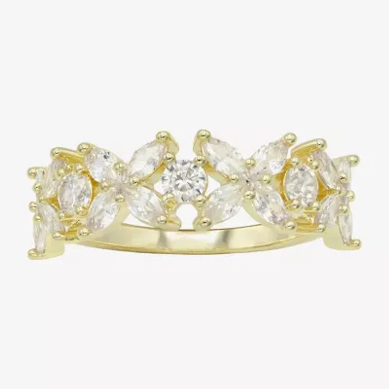 Sparkle Allure Floral Womens 3MM Cubic Zirconia 14K Gold Over Brass Flower Band
