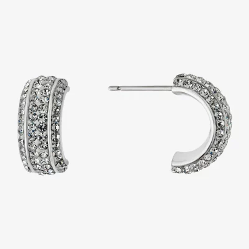 Sparkle Allure Half Huggie Womens Crystal 15mm Hoop Earrings