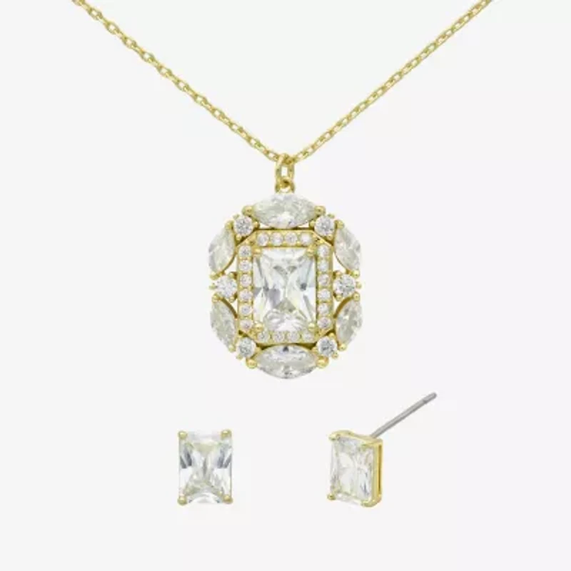Sparkle Allure Halo Womens Cubic Zirconia 14K Gold Over Brass 2-pc. Jewelry Set