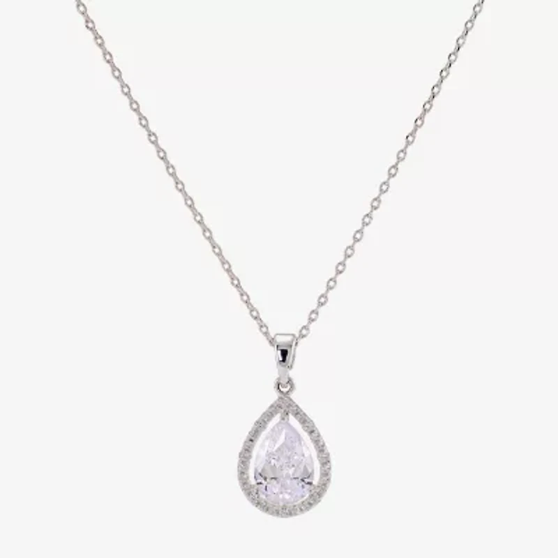 Sparkle Allure Halo Womens Cubic Zirconia Pure Silver Over Brass Pear 16 Inch Pendant Necklace