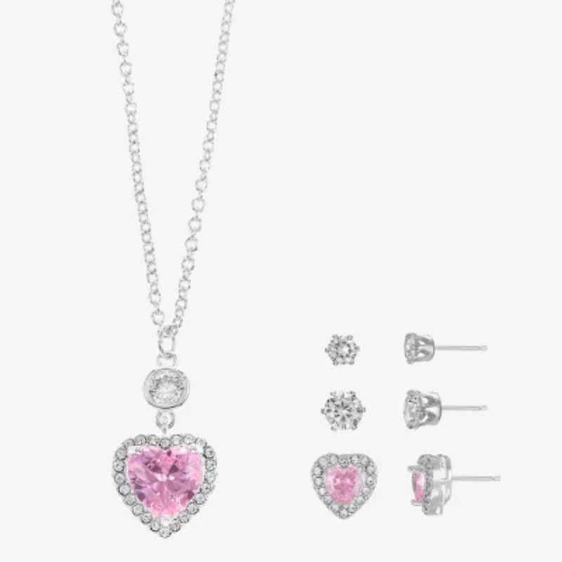 Sparkle Allure Halo Womens Pink Cubic Zirconia Pure Silver Over Brass Heart 2-pc. Jewelry Set