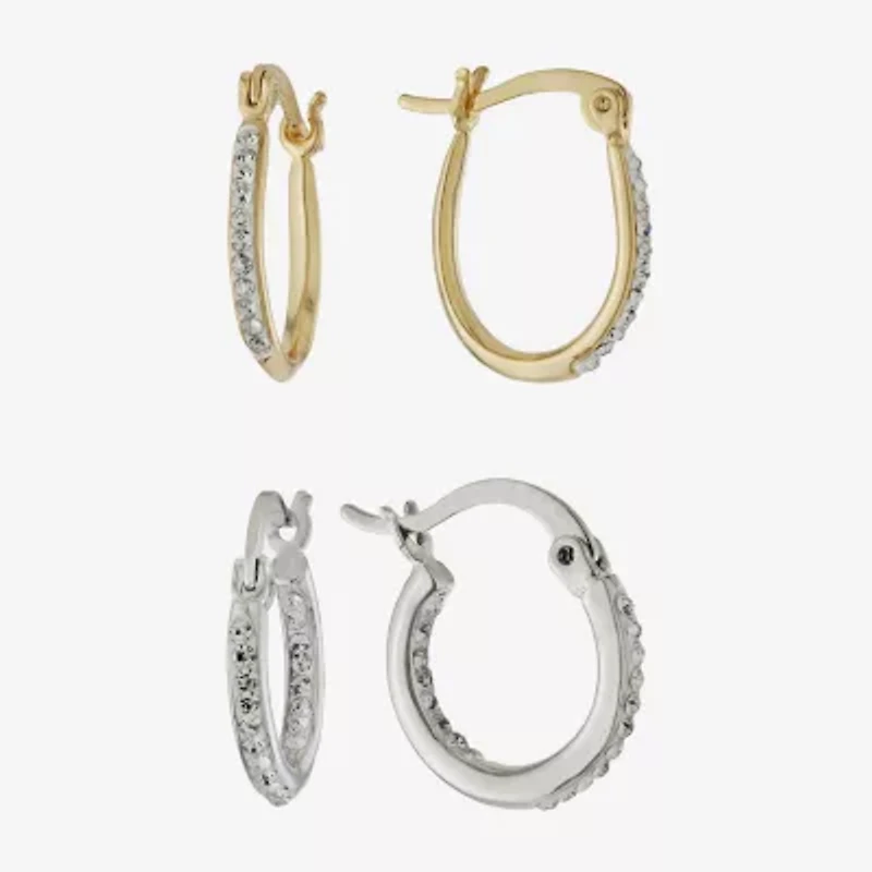 Sparkle Allure Hoop Womens Crystal 2 Pair Earring Set