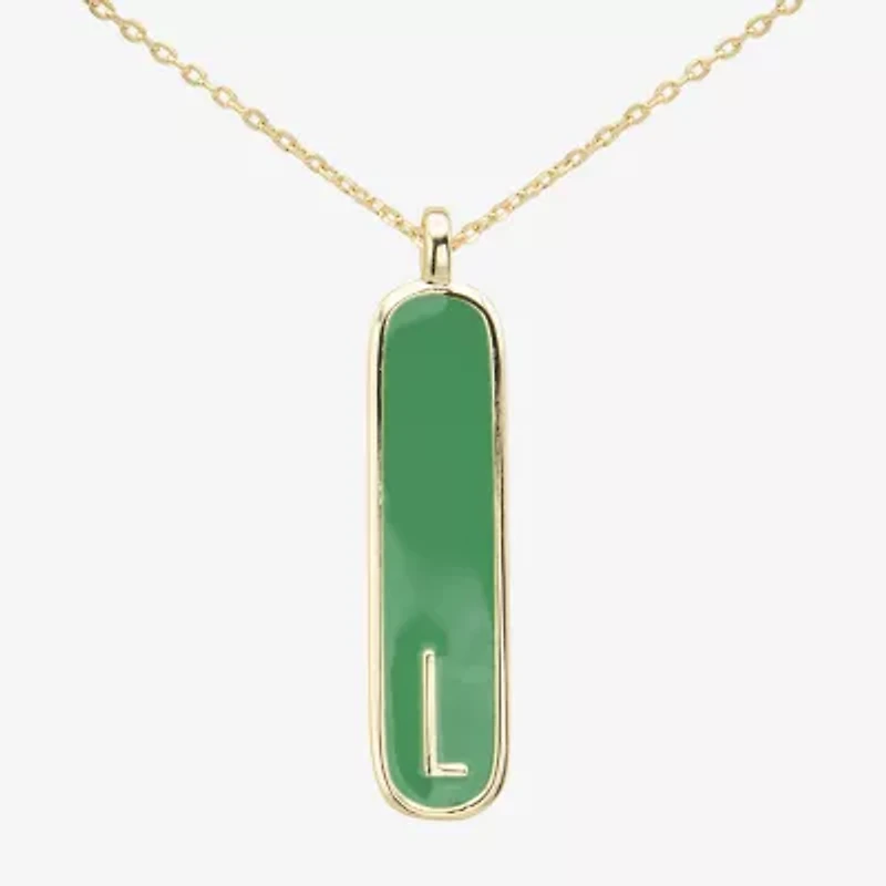 Sparkle Allure Initial Womens 14K Gold Over Brass Bar Oval 16 Inch Pendant Necklace