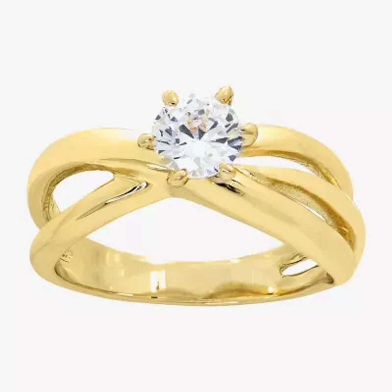 Sparkle Allure Orbital Womens Cubic Zirconia 14K Gold Over Brass Round Crossover Engagement Ring