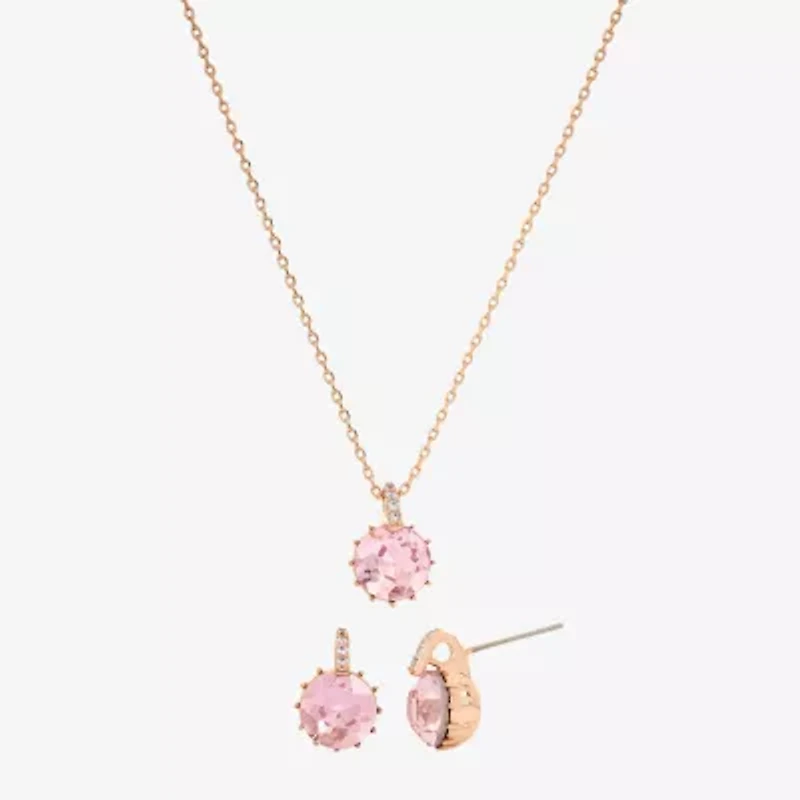 Sparkle Allure Pink Womens Pink Crystal 18K Rose Gold Over Brass Round 2-pc. Jewelry Set