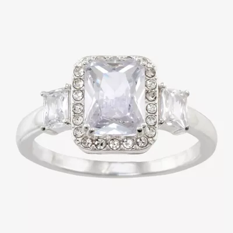 Sparkle Allure Side Stone Womens Cubic Zirconia Pure Silver Over Brass Halo Engagement RingSparkle Allure Side Stone Womens Cubic Zirconia Pure Silver Over Brass Halo Engagement Ring