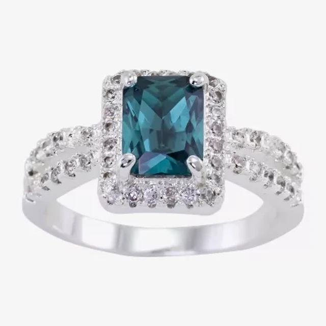 Sparkle Allure Womens Green Crystal Pure Silver Over Brass Halo Cocktail Ring