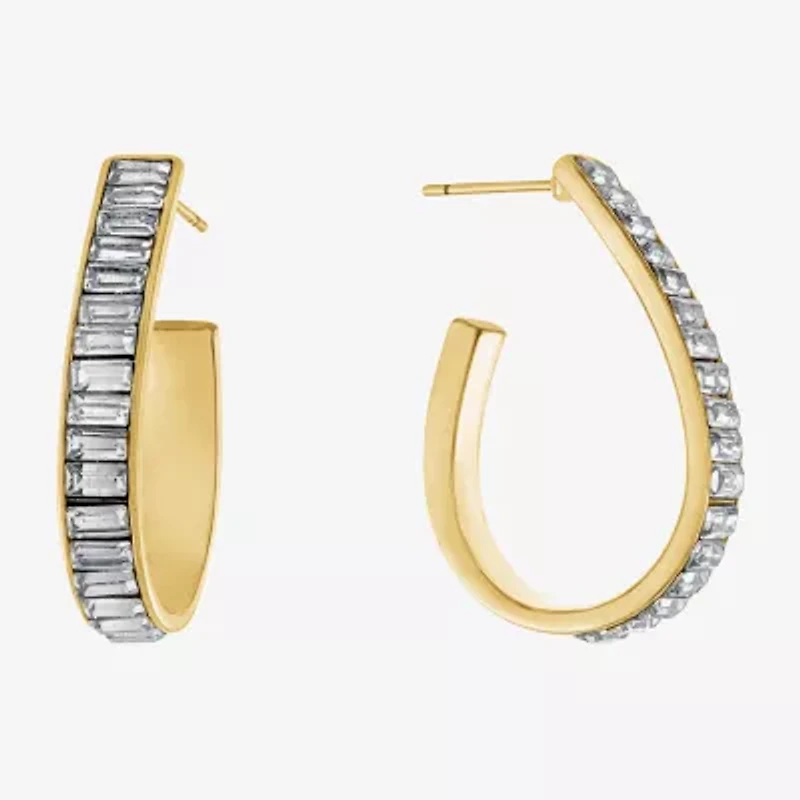 Sparkle Allure Womens Crystal 24K Gold Over Brass 32mm Hoop Earrings