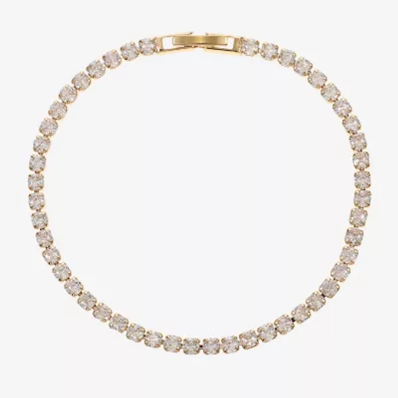 Sparkle Allure Womens Cubic Zirconia 14K Gold Over Brass Round 7.5 Inch Tennis Bracelet
