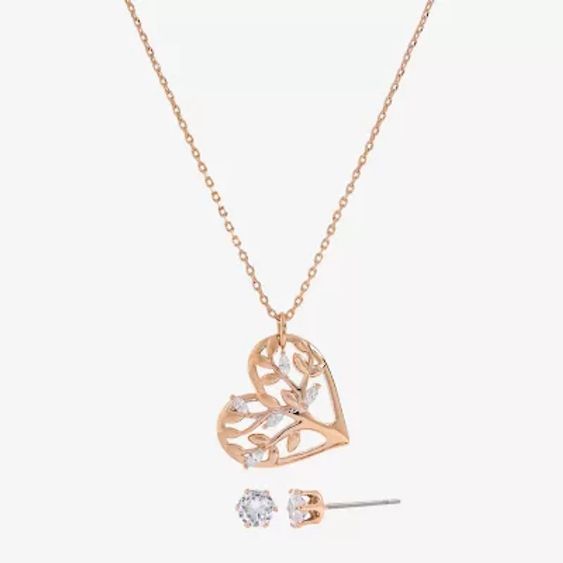 Sparkle Allure Womens Cubic Zirconia 18K Rose Gold Over Brass Heart 2-pc. Jewelry Set