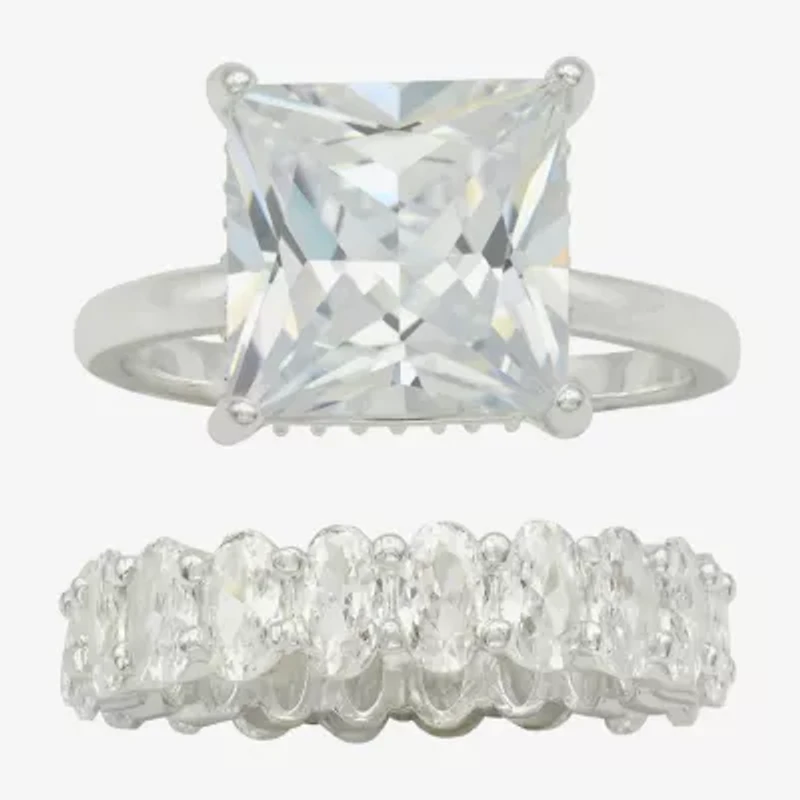 Sparkle Allure Womens Cubic Zirconia Pure Silver Over Brass Eternity Ring Set