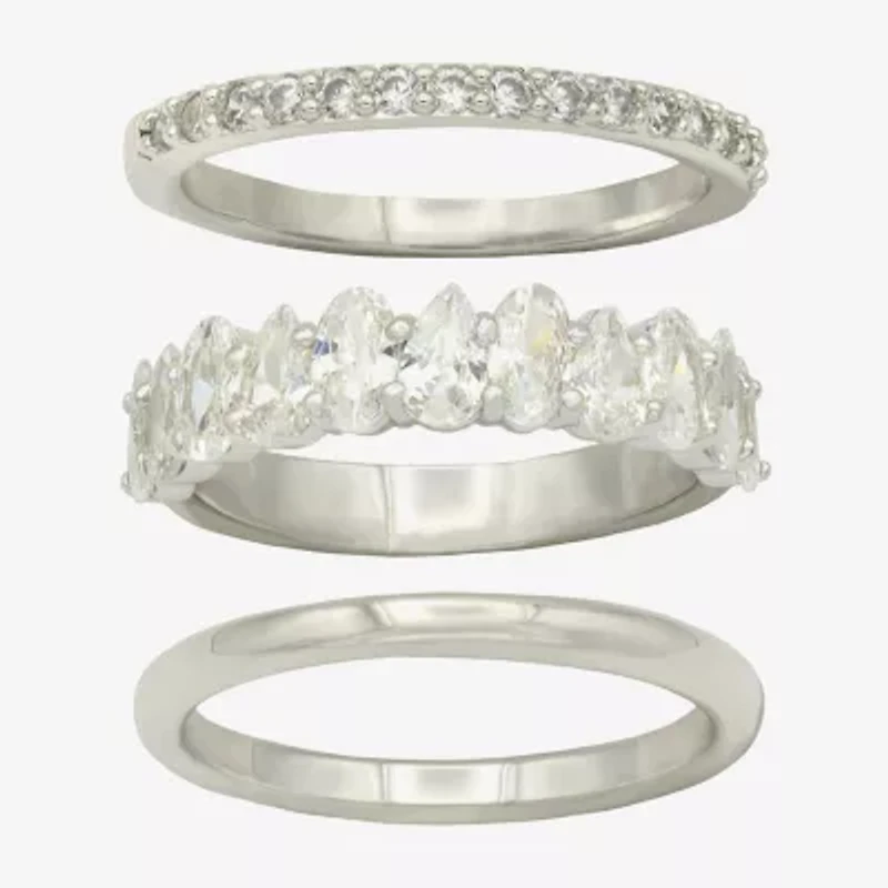 Sparkle Allure Womens Cubic Zirconia Pure Silver Over Brass Marquise Eternity Ring Set