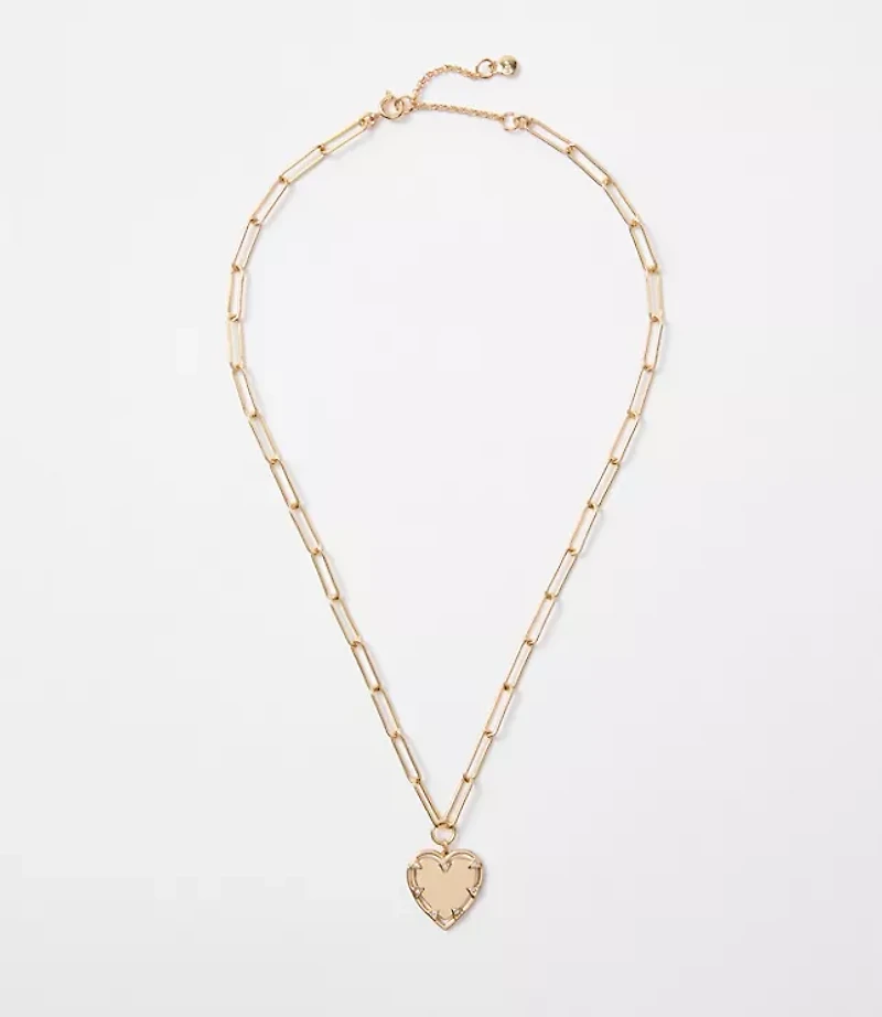 Starring a sparkle - bordered heart, this sleek chain link necklace is a totally modern romantic. Spring ring closure. 17 1/2"long with 2"extender., Imported: Loft Sparkle Heart Chain Link Necklace Goldtone Women's by Loft Size Regular - One Size Goldtone Women's Necklaces, Jewelry