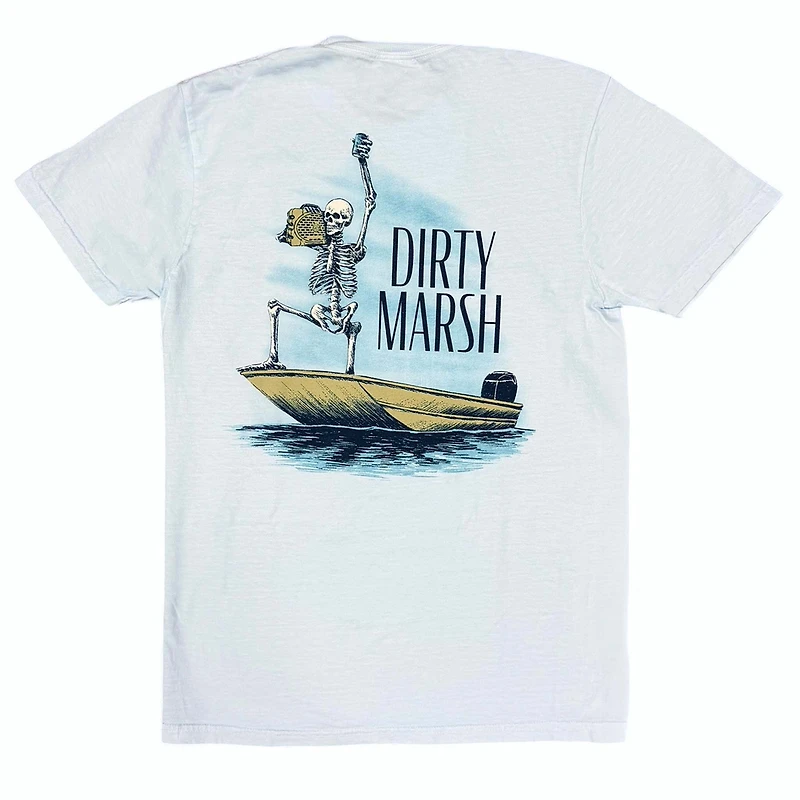 Shop the Dirty Marsh Speaker Skelly T-Shirt featuring a bold, fun graphic—perfect for boat days, beach trips, and laid-back coastal style.