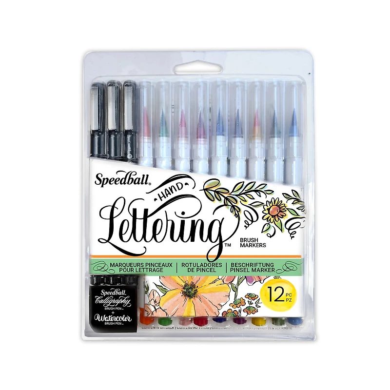 Start your journey in the world of hand-lettering, calligraphy, journaling, papercrafts and more with this versatile set from Speedball. This set comes with permanent calligraphy brush pens in three different sizes and nine water-soluble and blendable watercolor brush pens.Details:Includes assorted pieces12 piecesAcid-freeVeganPlastic and inkConforms to ASTM D-4236Contents:9 watercolor brush pens3 calligraphy brush pens (XS, S, M)