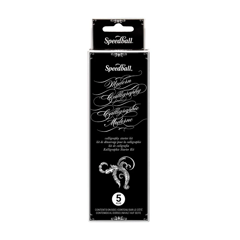 This modern calligraphy starter kit from Speedball has the basics you need to dip into the world of hand-lettering. This kit includes a jar of permanent and waterproof India ink, a pen cleaner, two nibs and a calligraphy pen to help get you started.Details:Includes assorted pieces5 piecesMetal, plastic and inkContents:1 2-in-1 pen holder (Straight/Oblique)1 broad edge pen nib1 pointed pen nib1 Super Black™ India ink jar (0.4 fl. oz./12 mL)1 pen cleaner jar (0.4 fl. oz./12 mL)