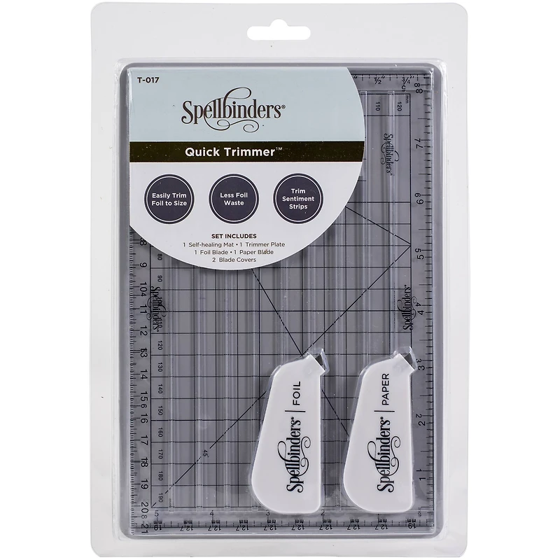Perfect to use for trimming thin foiled or stamped sentiments! This 7" x 10.25" x 0.75" package contains one self-healing mat, one trimmer blade, one foil blade, one paper blade and two blade covers. Imported.Details: