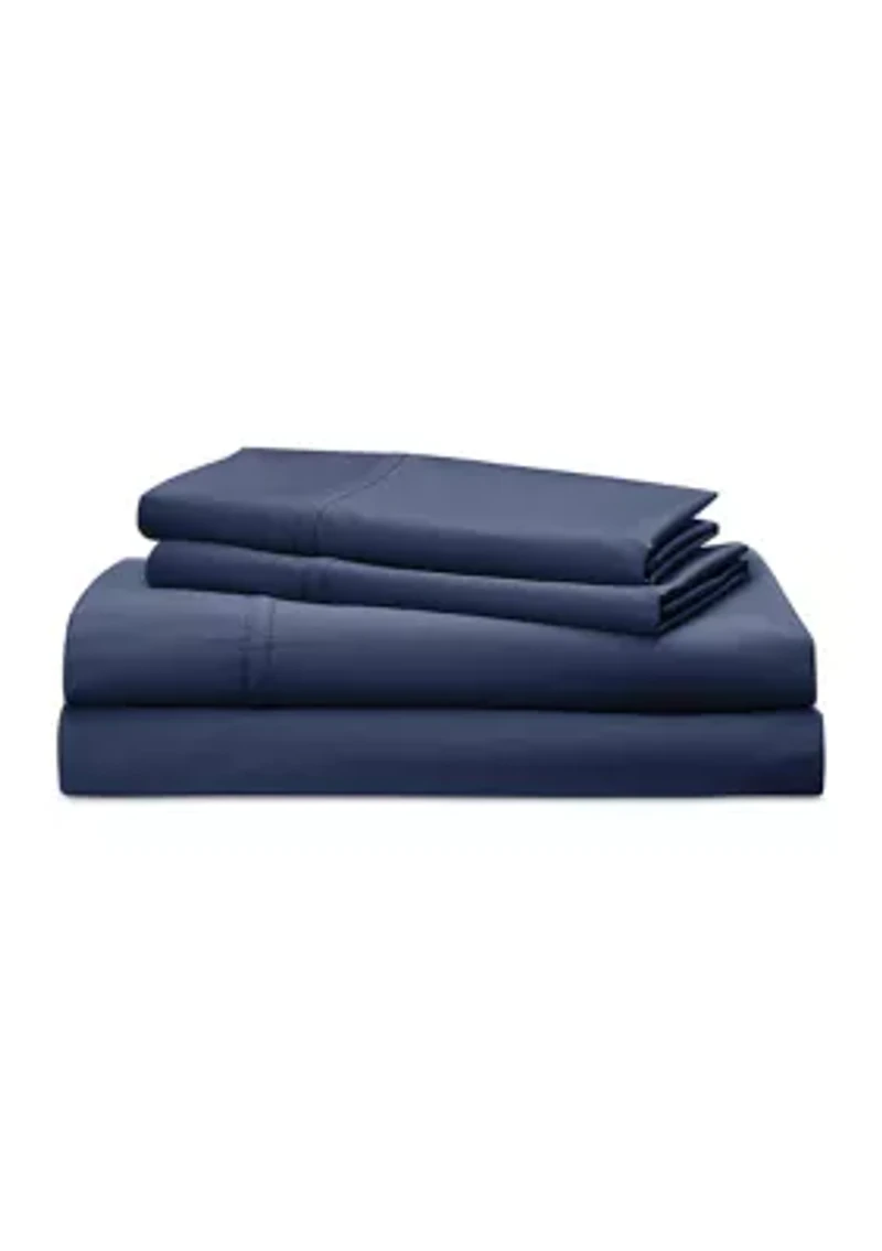 The Lauren Home Spencer sheet set offers a classic foundation of crisp sheeting with a polished luster and a smooth finish. Crafted from 475-thread-count, ultrasoft cotton sateen, this sheet set is designed in versatile colors that capture the tailored, fresh sensibility of the Spencer Bedding collection. Comes with a fitted sheet, a flat sheet, and two pillowcases. Additional pillowcases may be purchased separately. 475-thread-count cotton sateen. Double-ply structure provides extra warmth. 4x1 weave with a smooth finish. Flat sheets and pillowcases have 4-inch cuffs with a sewn-down folded pleat. Queen Sheet Set includes: Flat Sheet: 102 in L x 94 in W Fitted Sheet: 80 in L x 60 in W + 15 in D 2 Standard Pillowcases: 20 in L x 32 in W King Sheet Set includes: Flat Sheet: 102 in L x 112 in W Fitted Sheet: 80 in L x 72 in W + 15 in D 2 King Pillowcases: 20 in L x 40 in W 4-piece set 475-thread count Imported Material & Care Sateen Cotton Machine washable