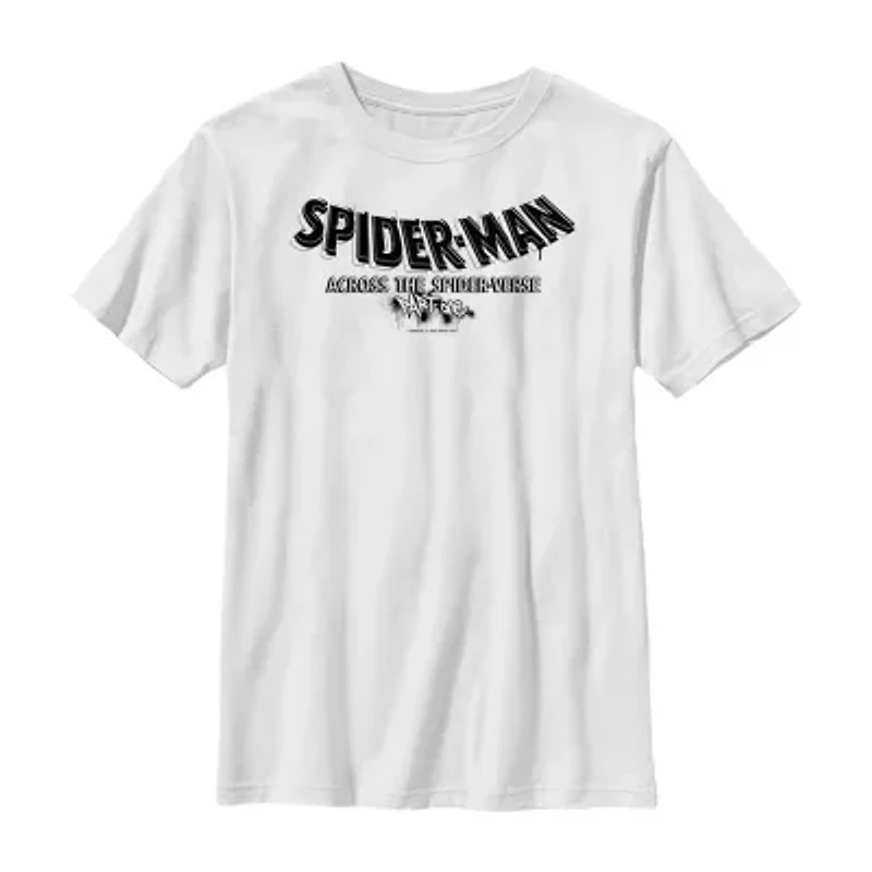 Spider-Man: Across The Spider-Verse Little & Big Kid Boys Crew Neck Short Sleeve Regular Fit Spiderman Graphic T-Shirt