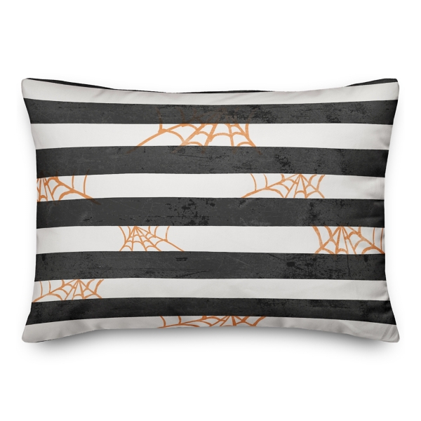 Bring some seriously cozy spookiness to your space this October! You'll love the pop our Spiderwebs and Stripes Pattern Throw Pillow adds to your home this Halloween. Pillow measures 20L x 14H in. Crafted of treated spun polyester with poly fill Striped design with spiderweb accents Hues of black, white, and orange Stain, mildew, and water resistant design Matching reverse design Care: Spot clean only. This item is available at Kirklands.com only, not available in stores. Please note: this item cannot be shipped to APO/FPO addresses.