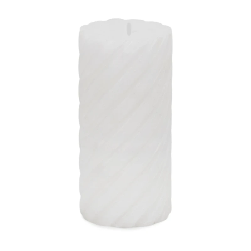 Illuminate your Christmas centerpiece with our White Spiral Pillar Candle. This unscented candle puts a sophisticated twist on a simple, classic design - perfect for the holiday season. Candle measures 6H x 3 in. in diameter White finish Paraffin wax Unscented Spiral design Single wick design Burn time: up to 28 hours Care: Trim wick to 1/4 inch prior to lighting. Do not allow wick trimmings to accumulate in wax pool. Place on a temperature safe surface. Burn for 2-3 hours at a time. Never leave burning candles unattended. Burn within sight. Keep away from anything that can catch fire. Keep out of reach of children and pets. Discontinue use when 1/4 inch of wax remains. Contact your local Kirkland's store for availability. Quantities and selection may vary by location.