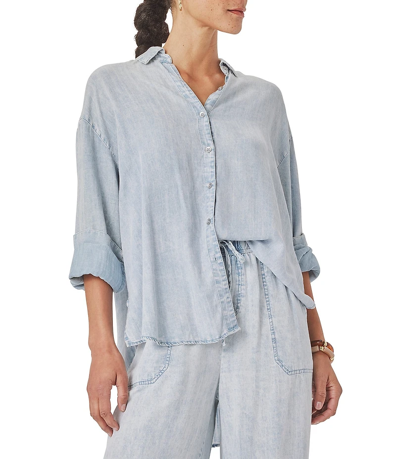 From Splendid, this shirt features: Collard neckline Long sleeves Button front closure Lyocell Wash with fasteners closed Turn garment inside out Machine was cold separately gentle cycle Do not bleach Line dry Cool iron if necessary Imported.
