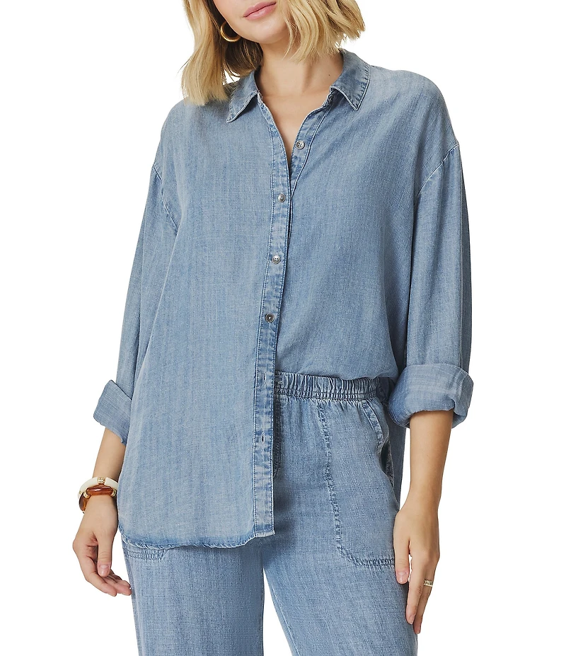 Splendid Denim Collar Long Sleeve Button Down Shirt