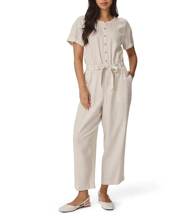 Splendid Rayanne Linen Blend Belted V-Neck Short Sleeve Cropped Jumpsuit