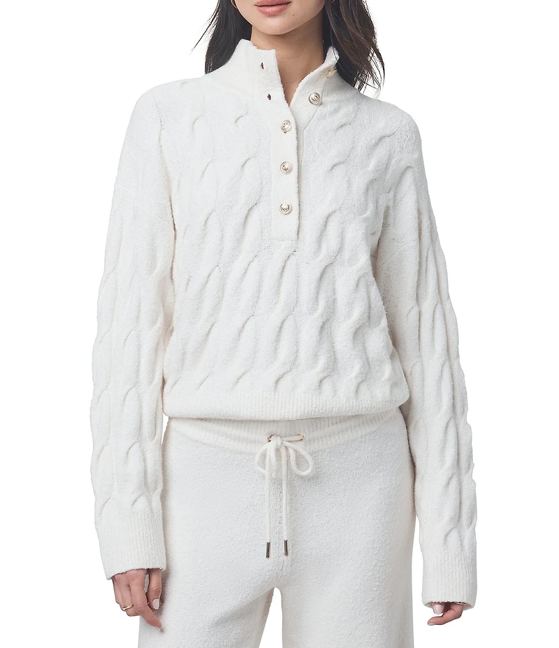 From Splendid x Cella Jane Blog, this top features: Knit fabrication V-neckline Long sleeve Button front closure Cotton/nylon/wool/elastane Dry clean only Imported. More layers. More textures. More moments that match. Splendid x @Cellajaneblog: Fall 2025 is made to keep your whole season effortlessly coordinated. This Half-Placket Sweater is crafted in a soft, textured boucle yarn for a cozy feel with just the right amount of warmth. Designed with a cable knit pattern and a polished half-placket front with statement buttons, it’s easy to wear open or closed for versatile styling.