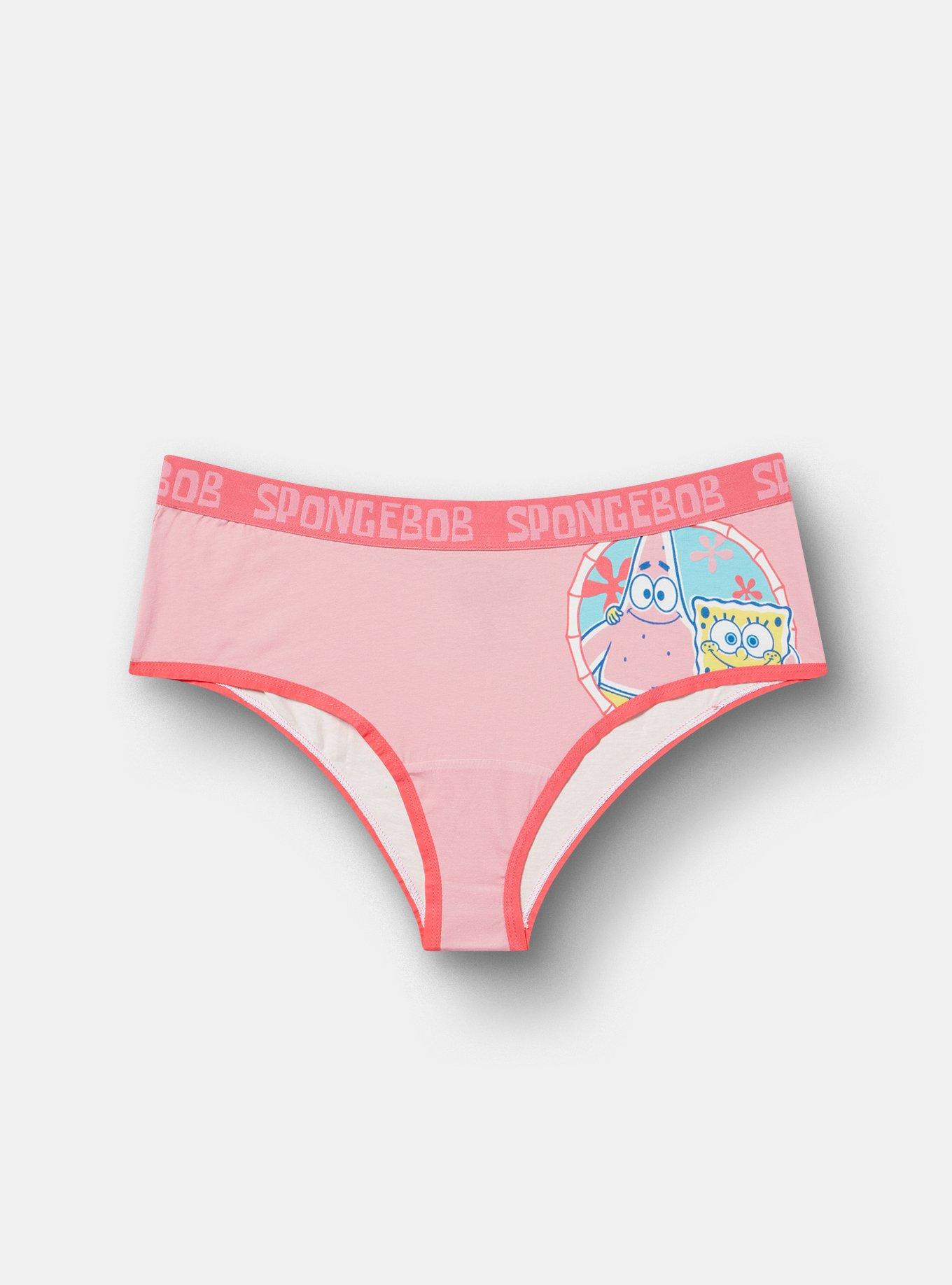FIT Mid-rise. Cheeky coverage. MATERIALS + CARE Cotton-blend knit fabric. 95% cotton, 5% spandex. Machine wash cold. Tumble dry low. Imported. DETAILS Elastic waistband. SpongeBob SquarePants graphic.