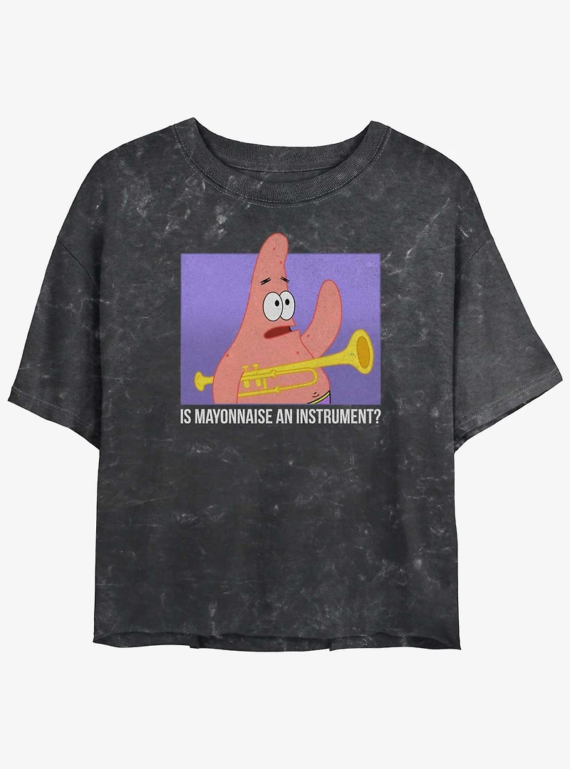 Is mayonnaise an instrument? Asking for a friend... named Patrick. See if this cropped, mineral wash SpongeBob SquarePants tee has the answer.