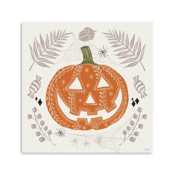 Add a bewitching touch to your boho-chic space with the Spooky Silhouette I Halloween Canvas Art Print! The botanical and sparkle accents add a magical touch! Overall dimensions Width: 20 in. Depth: 1.25 in. Height: 20 in. Distinctively printed on stretched canvas Wrapped edges complete the look Features a jack o lantern subject Botanical and sparkle accents Hues of orange, white, and gray Artist: Anne Tavoletti Weight: 1.8 lbs. Hangs from back-mounted hardware Care: Dust with a soft, dry cloth. This item is available at Kirklands.com only, not available in stores. Please note: this item cannot be shipped to APO/FPO addresses.