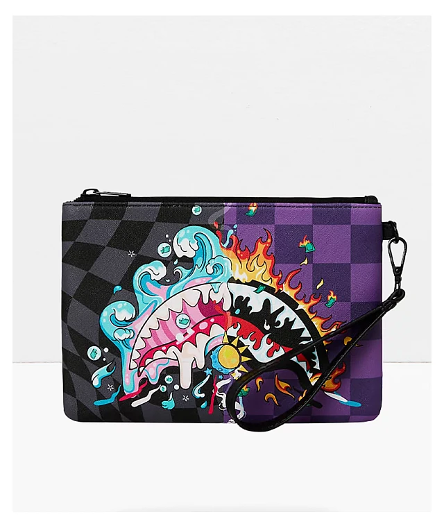 Sprayground Pink Drip Brown & Black Checkered Clutch Bag