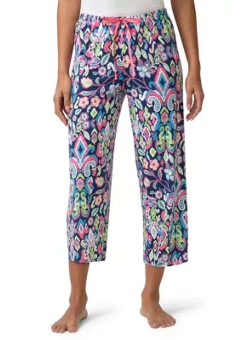 Bring a little sunshine to the downtime. HUE®'s Springs Arrival Ikat PJ Capri pants feature a relaxed fit with a cheerful print that feels like spring on repeat. Designed with a comfy elastic waistband, a sweet ribbon drawstring, and a breezy 24.5" inseam that keeps things cool and casual. The perfect capri to brighten bedtime—or the morning coffee run. Elastic waistband Imported Product Specifications Capri length 24.5" inseam Material & Care 60% cotton, 40% rayon Machine washable