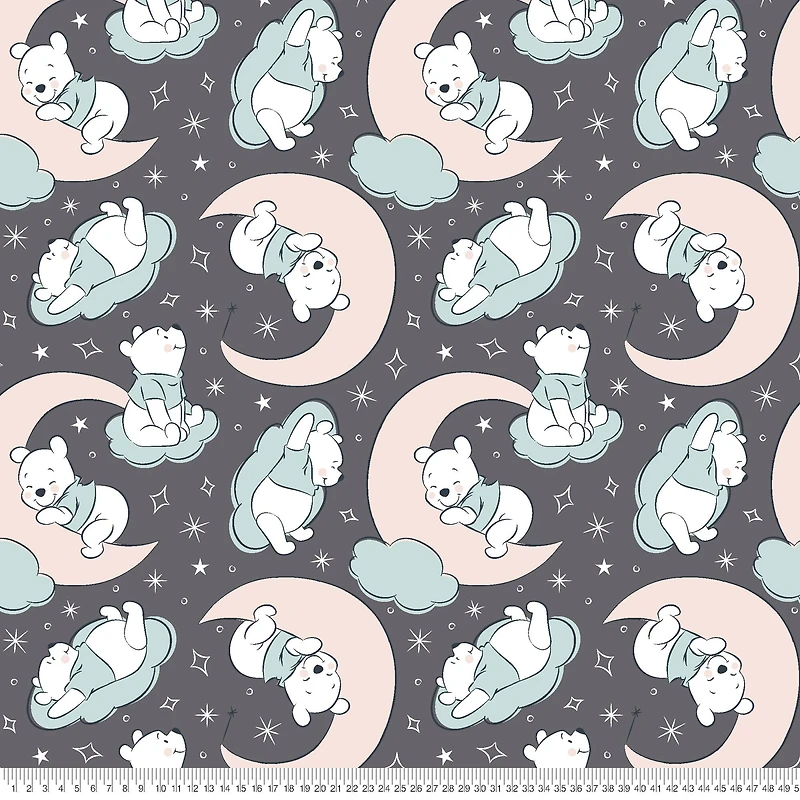 Nestle your little ones in this fleece Winnie the Pooh fabric perfect for blankets and quilts! Color: GrayContent: Fleece Width: 59"/60"Horizontal Repeat: 25.25" Vertical Repeat: 25.25" Maximum cut length: 10 yd.
