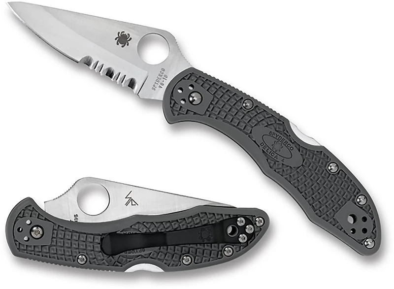 Be prepared with the Spyderco Delica 4 Lightweight Folding Knife. The VG-10 stainless steel construction, while the fiberglass-reinforced nylon handle provides a firm grip. The four-position pocket clip allows for ambidextrous carrying.