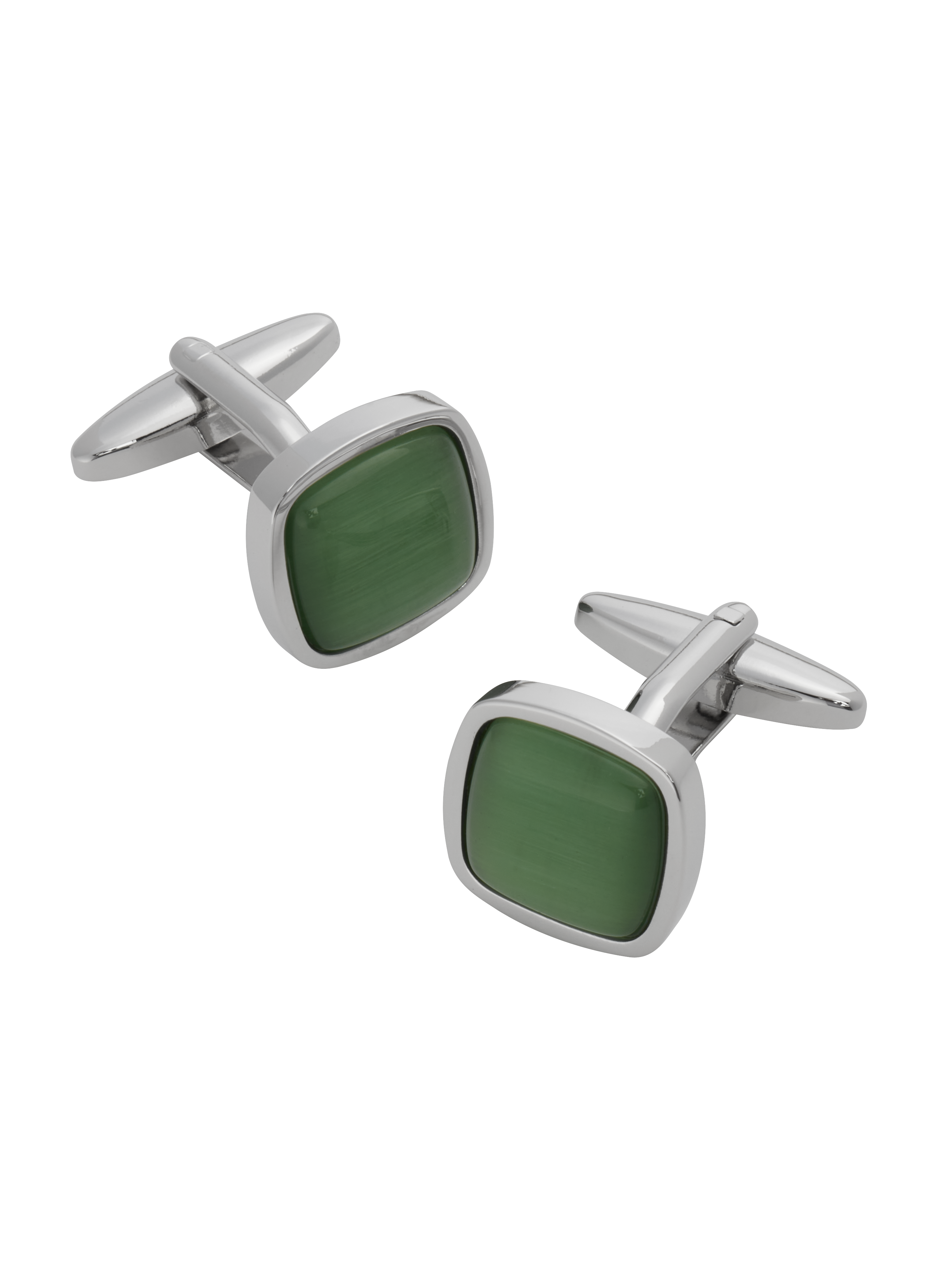 Your suit just met its green-eyed match. These square olive glass cufflinks with a sleek silver finish serve sophistication with a side of unique charm. Whether it's business-casual Monday or a homecoming event, they add a touch of boho-chic elegance to your look. The bullet-back closure keeps things secure while you work the room like a pro. Warning: compliments incoming.