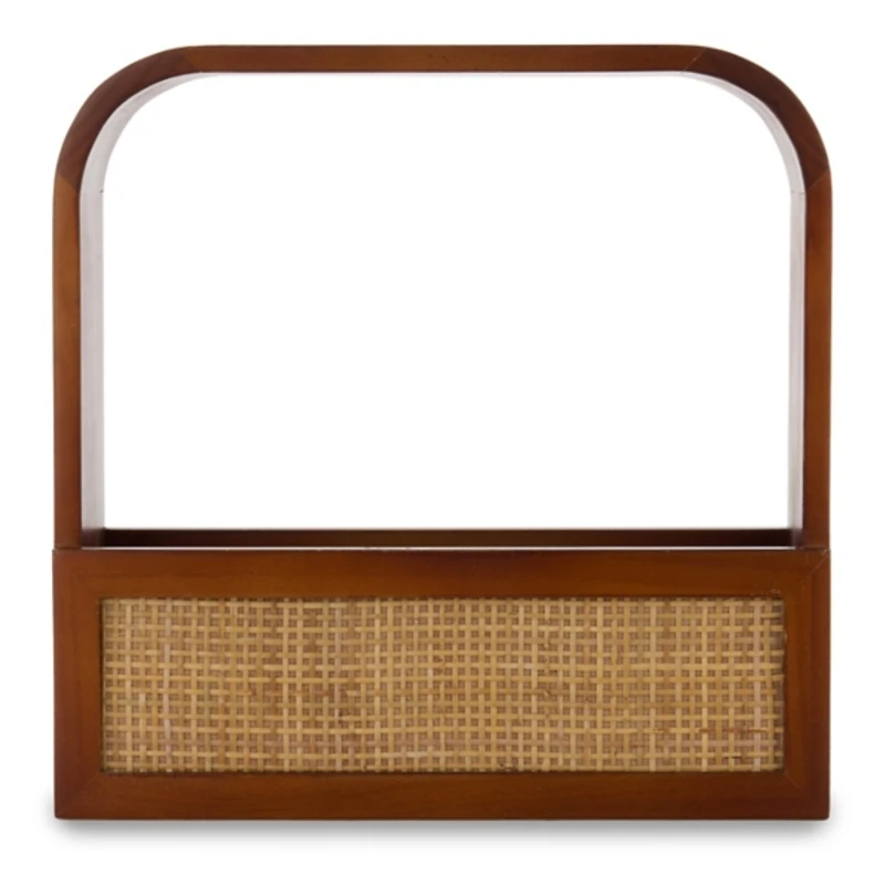 Add dimension to your wall decor with this Square Wood and Rattan Wall Shelf. Complete with natural rattan, it's perfect for displaying books, magazines, and even faux flowers! Overall dimensions Width: 12.5 in. Depth: 5 in. Height: 12.5 in. Crafted of pine wood and rattan Brown finish Natural rattan accent Features one (1) shelf Square shape with rounded top corners Hangs from back-mounted hardware Care: Dust with a soft, dry cloth. Contact your local Kirkland's store for availability. Quantities and selection may vary by location. WARNING: Cancer and Reproductive Harm - For more information go to www.P65Warnings.ca.gov .
