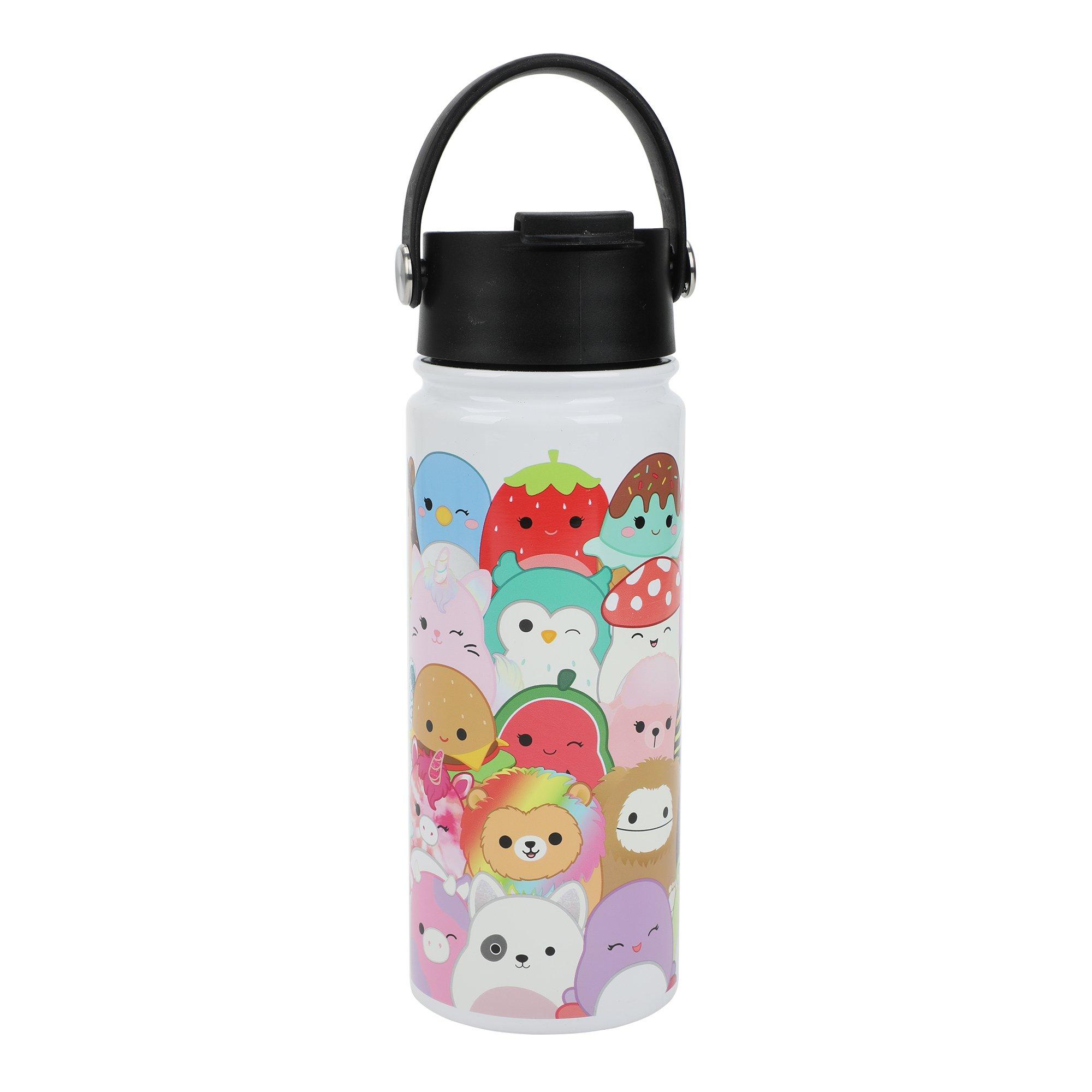 Stay hydrated with this stainless steel bottle wrapped in all of your favorite Squishmallows! This bottle features a convenient carry handle so that you can take it on the go.