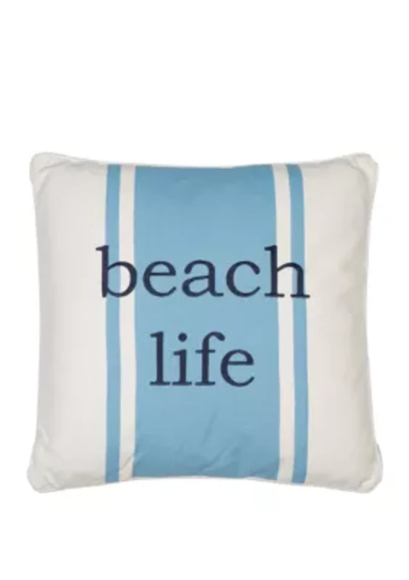 Take a load off with the Levtex Home St Bart Beach Life Pillow featuring embroidery on a relaxed light blue stripe. This embroidered 20-inch x 20-inch sentiment pillow comes with a feather insert and matches back to the Levtex Home St. Bart collection. Imported Product Specifications 20 in W x 20 in L Material & Care Cotton Machine washable