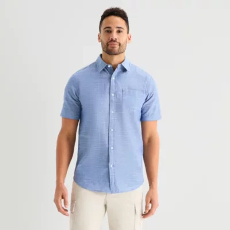 St. John's Bay Slub Mens Short Sleeve Classic Fit Button-Down Shirt