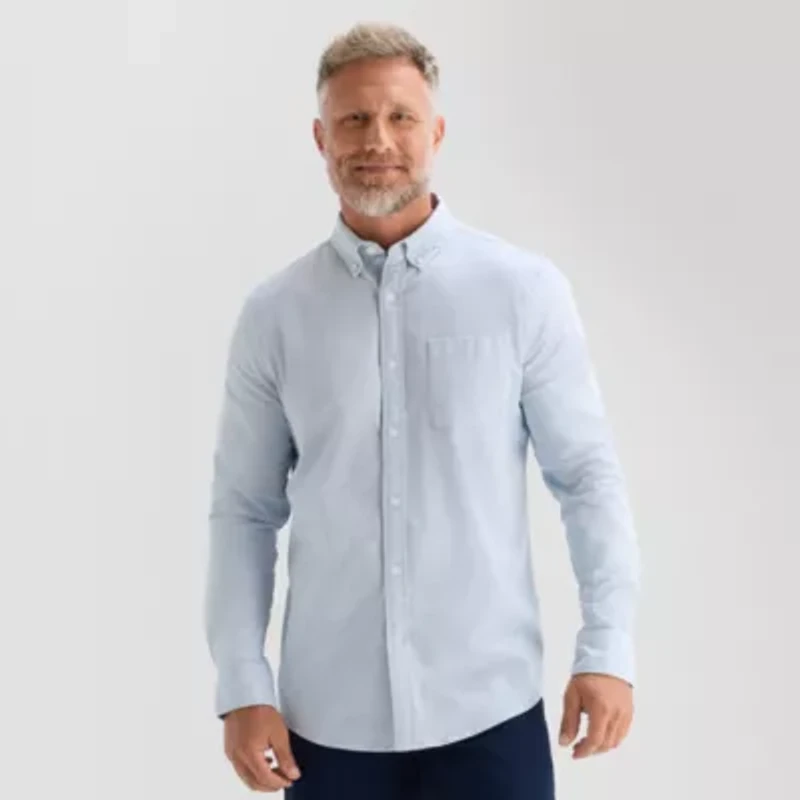 St. John's Bay Washed Oxford Mens Long Sleeve Classic Fit Stretch Fabric Button-Down Shirt
