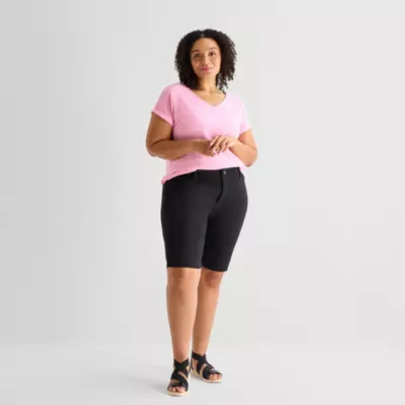 St. John's Bay Womens 11" Plus Easy-on + Easy-off Bermuda Short