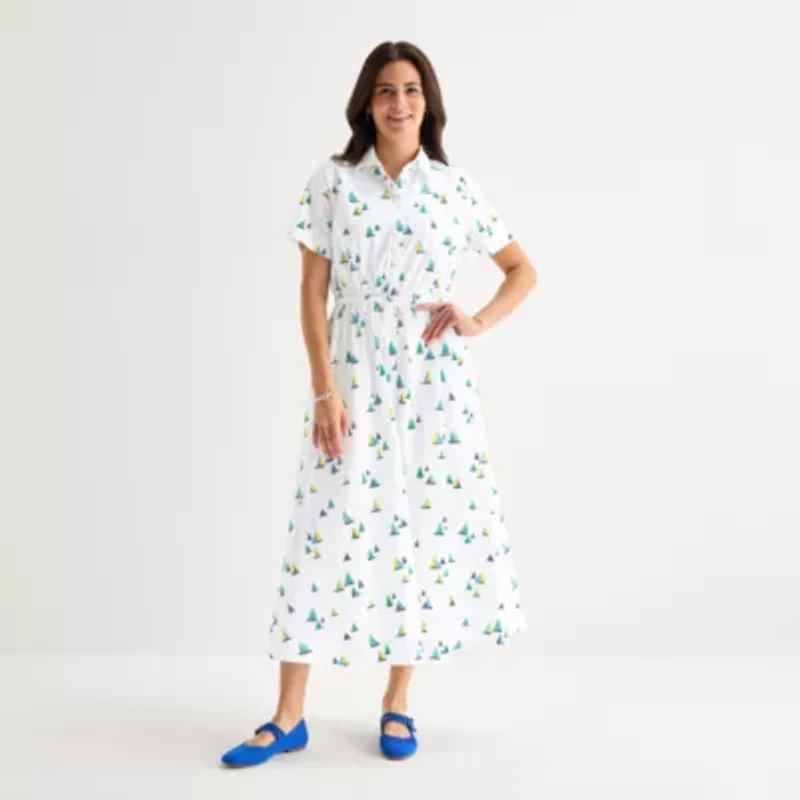 St. John's Bay Womens Short Sleeve Midi Shirt Dress