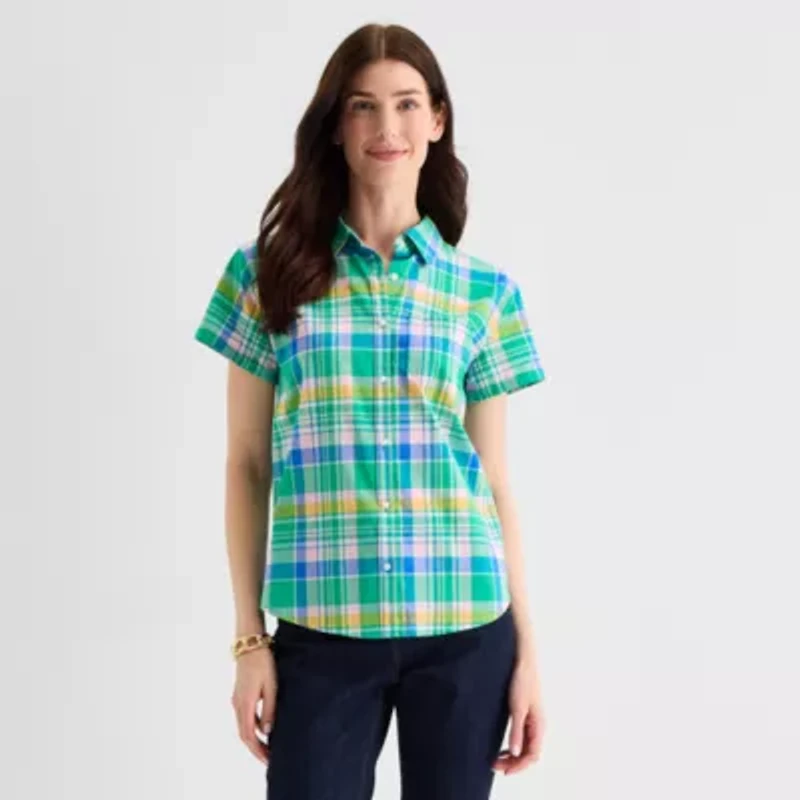 St. John's Bay Womens Short Sleeve Regular Fit Button-Down Shirt